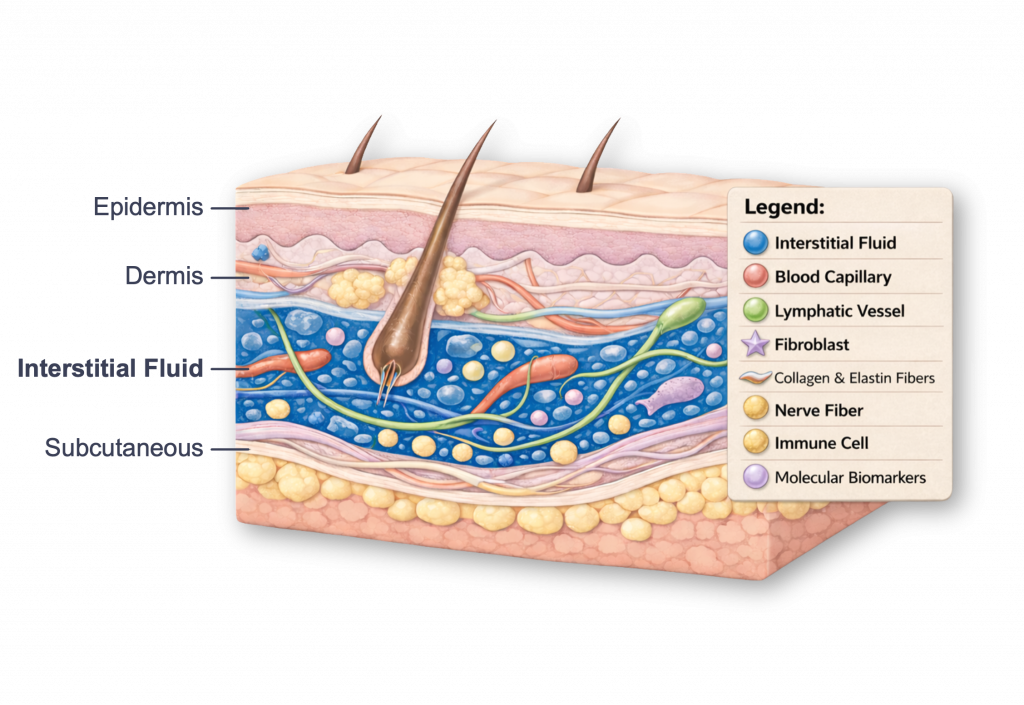 Interstitial fluid (ISF) surrounds living skin cells